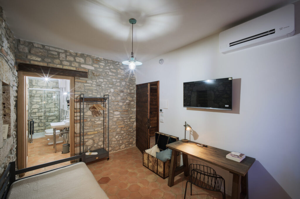 L’edificio, finemente restaurato, conserva tutto il carattere delle antiche abitazioni locali: muri in pietra a vista, soffitti a volta e dettagli architettonici che raccontano la storia del luogo. Ogni stanza è arredata con cura, unendo comfort moderni e atmosfera tradizionale, per offrirvi un’esperienza autentica e accogliente.
