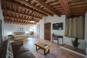 Bilocale composto da cucina di 20 mq (piano cottura a induzione, forno, frigo e congelatore) e camera da letto matrimoniale di 25 mq con bagno