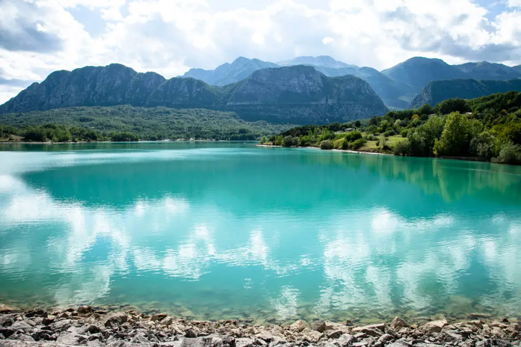 Il lago di Castel San Vincenzo, all’interno del Parco Nazionale d’Abruzzo Lazio e Molise e a meno di 1 km dal paese di Castel San Vincenzo. Il lago è bellissimo da vedere, circondato dalle cime svettanti delle Mainarde, innevate in inverno, con acque turchesi che richiamano i mari caldi del mondo. È l’unico lago artificiale balneabile del Molise e per questo è estremamente frequentato, soprattutto in estate.