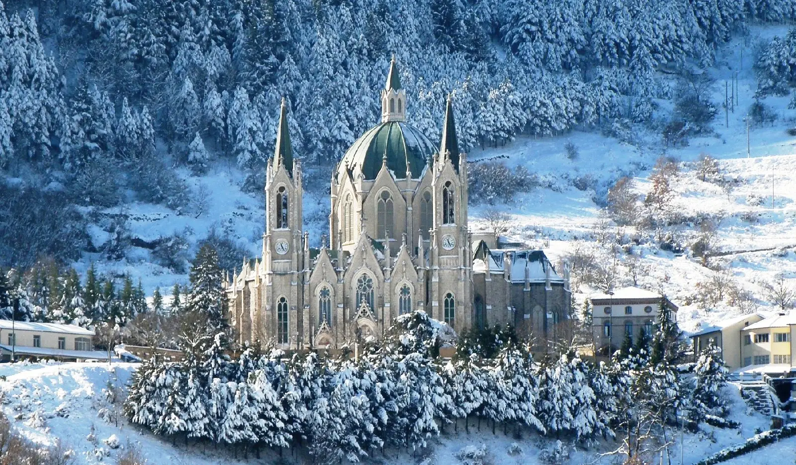 A soli 15 km da Isernia, lungo la Strada Statale 17, sorge uno dei luoghi più amati e frequentati del Molise, meta di pellegrinaggi ma anche di visite da parte di curiosi e appassionati d’arte e architettura. È la Basilica Minore dell’Addolorata di Castelpetroso, santuario imponente e suggestivo che colpisce per la sua forma slanciata e la posizione panoramica.